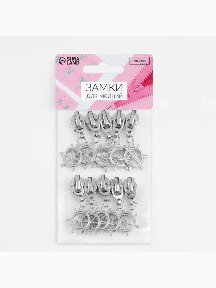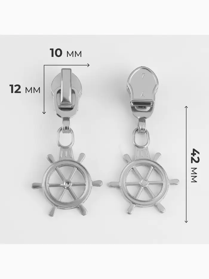 Бегунок для молнии «Спираль», №7, «Штурвал», 10 шт., цвет никель