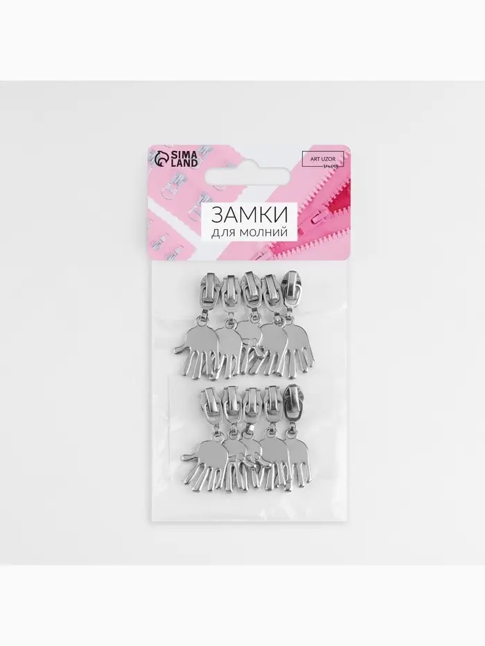 Бегунок для молнии «Спираль», №3, «Ладонь», 10 шт., цвет никель