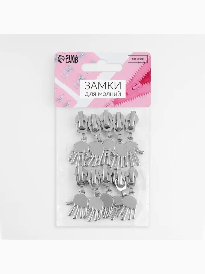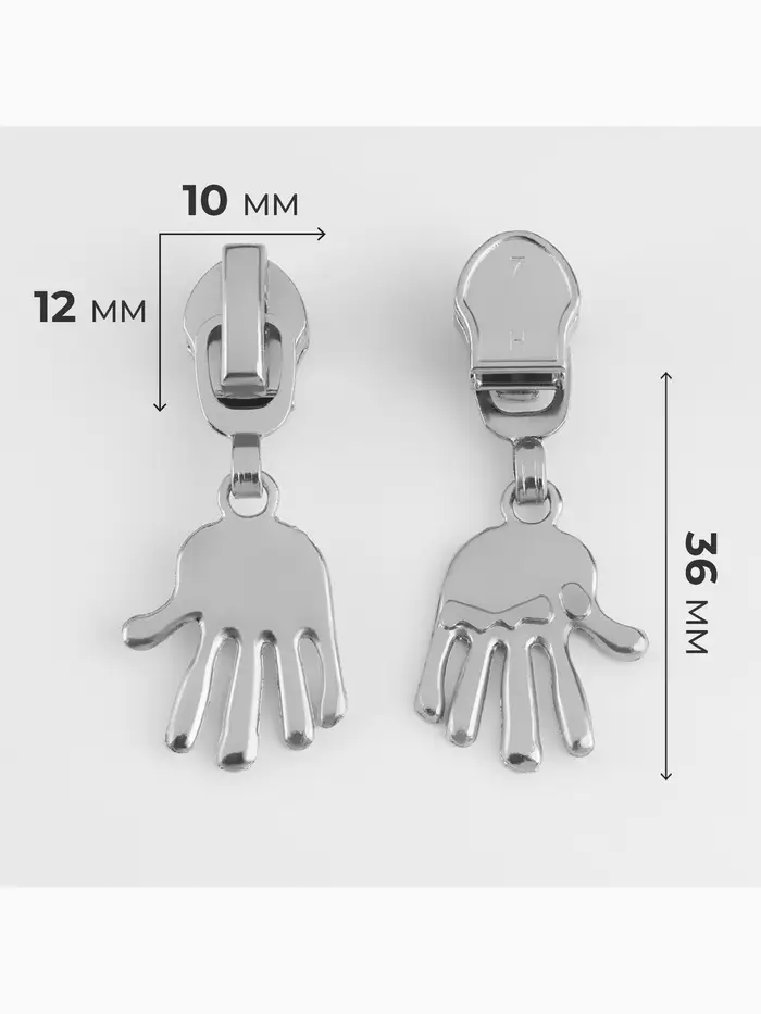 Бегунок для молнии «Спираль», №7, «Ладонь», 10 шт., цвет никель