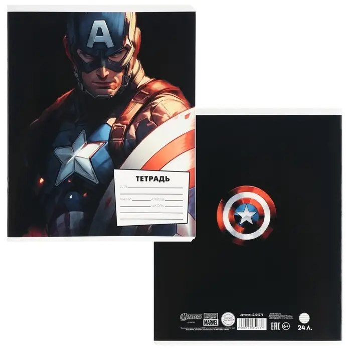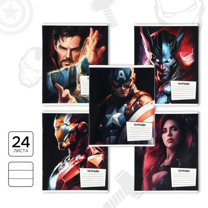 Тетрадь в линейку 24 листа, 5 видов МИКС, обложка мелованный картон, «Мстители»