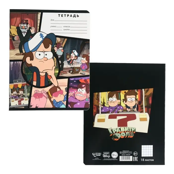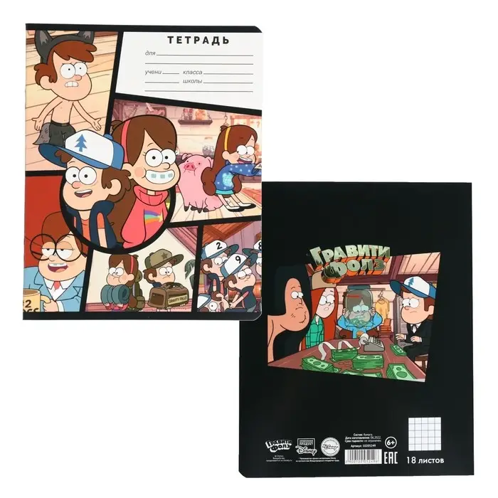 Тетрадь в клетку 18 листов, 5 видов МИКС, обложка мелованный картон, «Гравити Фолз»