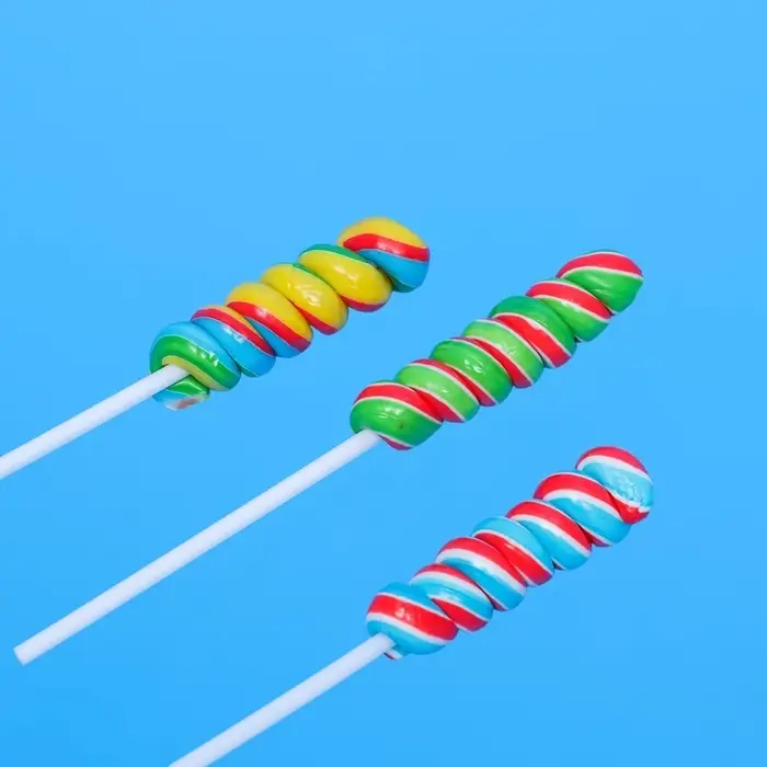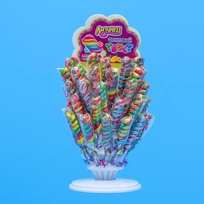 Яркие карамельные леденцы на палочке - это главная сладость детства. Разноцветные леденцы необычной формы имеют классический сладкий вкус. Леденец станет не только отличной сладостью, но и украшением вашего праздника. Карамель упакована в индивидуальную упаковку-пленку. Длина палочки позволяет использовать её как декор в качестве украшения торта. Подарите радость ярких вкусов, настроения и восторг своим родным и близким на на любой праздник или просто так!
