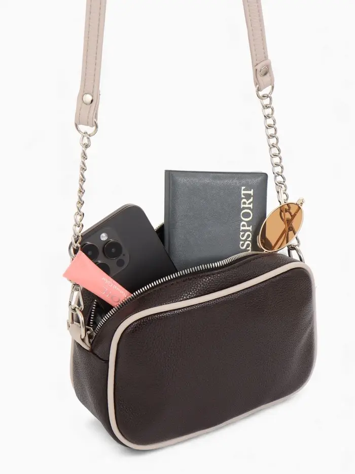 Сумка женская кросс-боди на молнии, 18×6.5×12 см, коричневая
