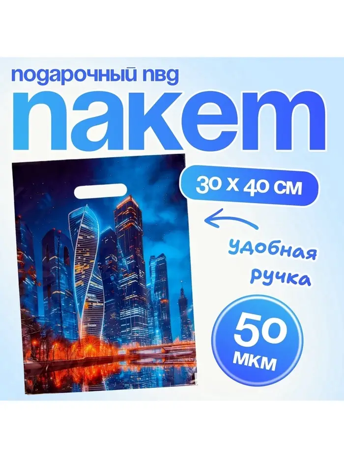 Дизайн пакета с изображением современных небоскрёбов Москва-Сити символизирует динамичное развитие столицы и её статус одного из самых крупных деловых центров мира.