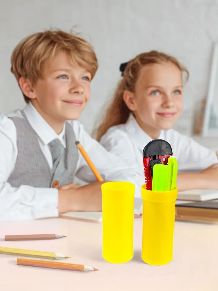 Пенал-тубус для хранения письменных принадлежностей. Изготовлен из легкого и прочного пластика, закрывается при помощи мини-защёлок. Предназначен для учащихся младших классов. Поставляется без наполнения.