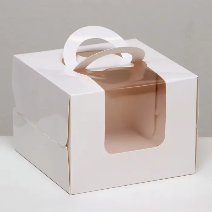 - Прозрачное окно для демонстрации: Вставка из прочного пластика дает возможность оценить десерт, не открывая упаковку. Это особенно удобно для продажи выпечки или оформления подарка.
