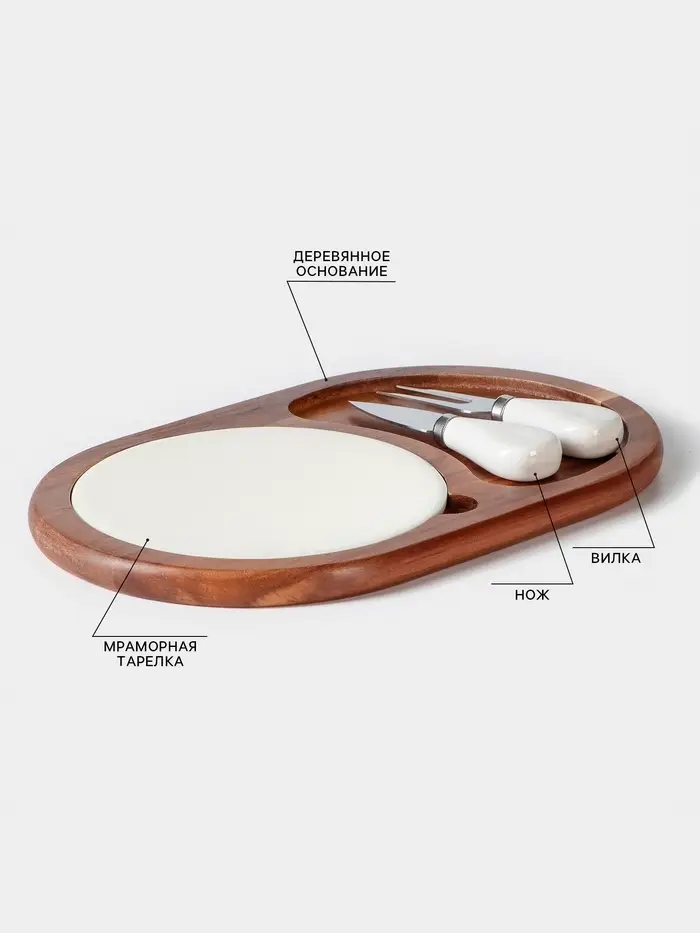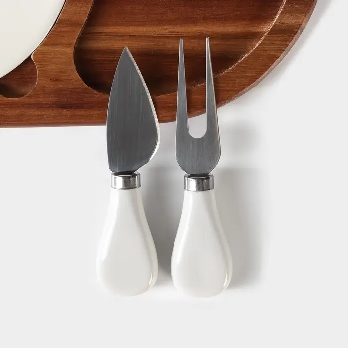 Набор для подачи сыра «Мрамор», 2 ножа, 28×18.5×1.5 см, акация