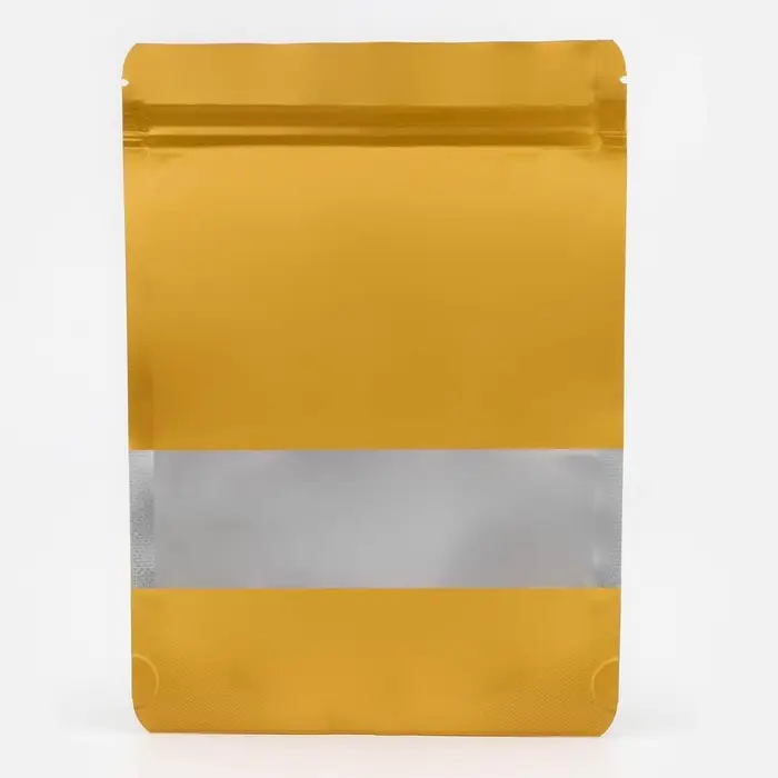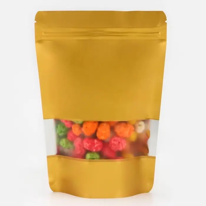 Премиальная упаковка для розничной продажи и подарков – этот дой-пак объединяет функциональность и эстетику. Устойчивое донце позволяет размещать пакет на витрине без дополнительных держателей, а прозрачное окно демонстрирует содержимое, усиливая привлекательность товара. Матовая золотая поверхность создает впечатление дорогой, продуманной упаковки, подходящей для премиальных продуктов, подарков и сувениров. Высокая прочность материала гарантирует сохранность содержимого при транспортировке и хранении.