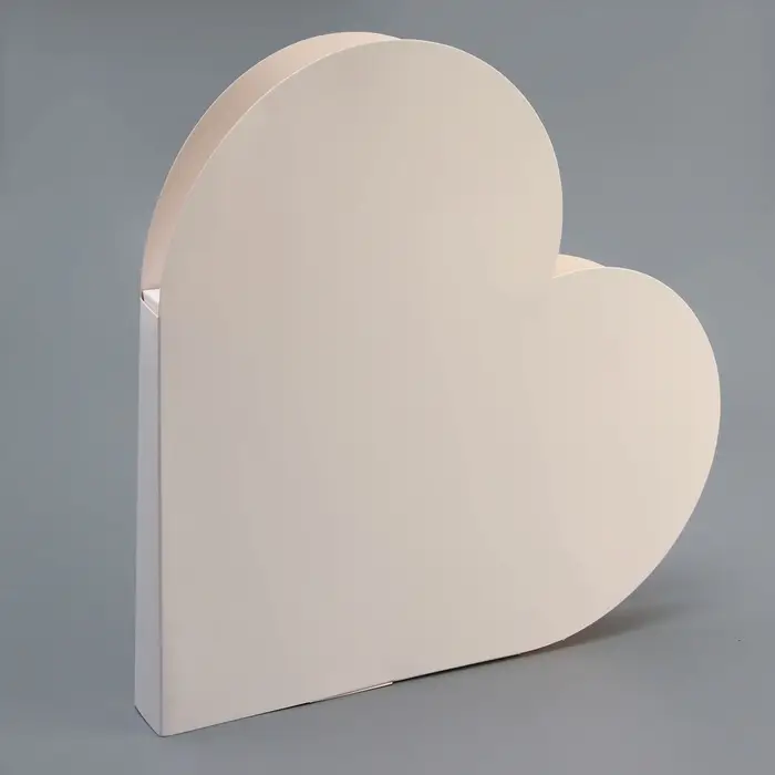 - Фигурная форма: Силуэт сердца – узнаваемый символ, подходящий для подарков на 14 февраля, 8 Марта, день рождения и другие события, где важен эмоциональный акцент. Крупный размер делает коробку заметной и эффектной при вручении.