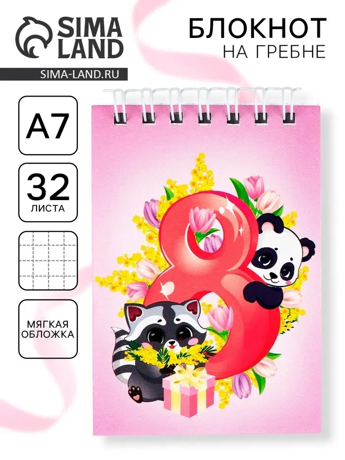 Блокноты в мягкой обложке А7, 32 л. на гребне «Самая милая. 8 марта»