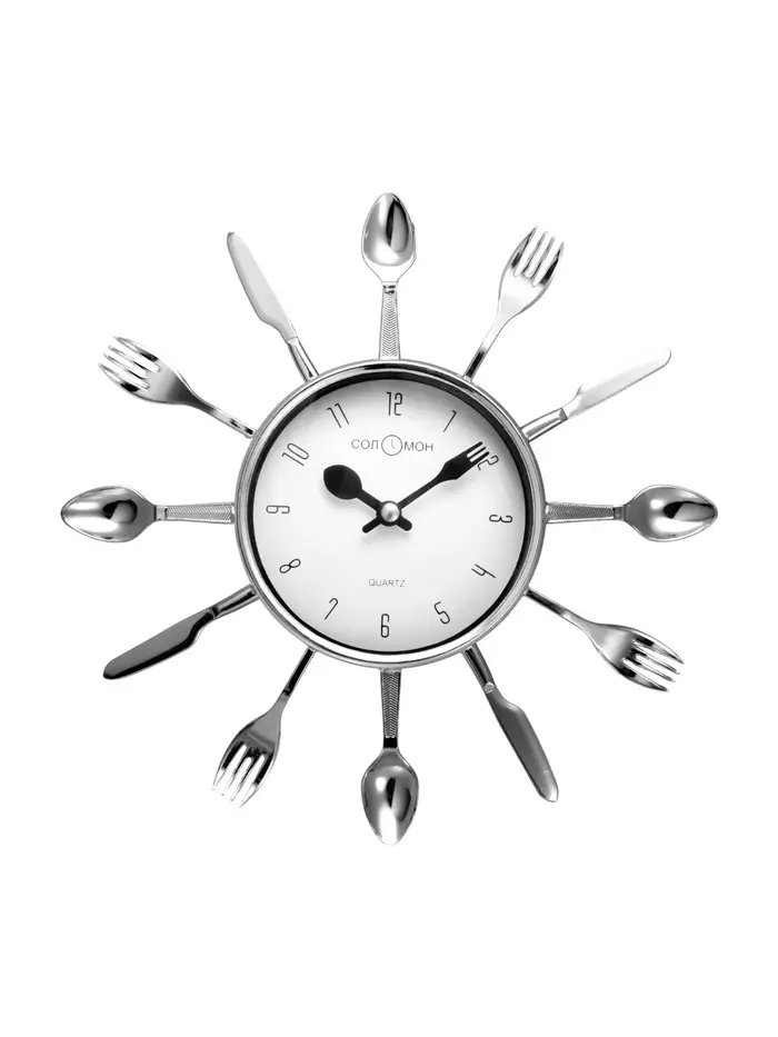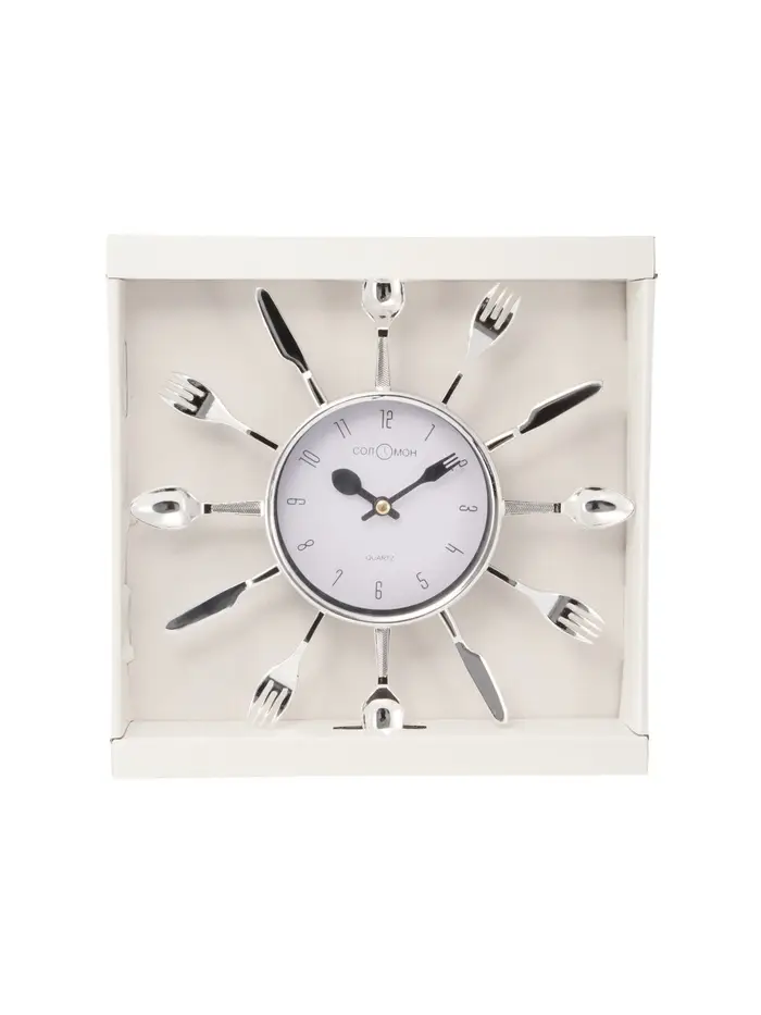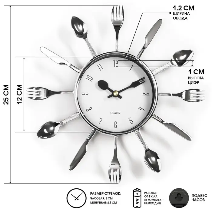 Часы настенные интерьерные «Вилки, ложки, поварешки», серия: Кухня, бесшумные, плавный ход, 25×25 см, циферблат d=11 см, от батарейки 1×АА