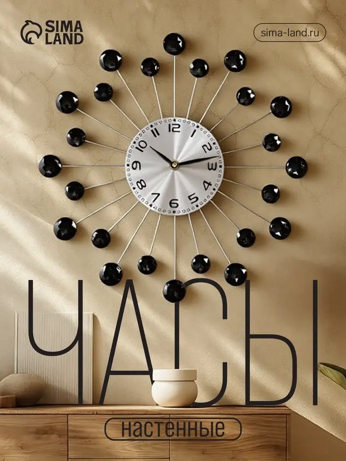 Часы настенные — функциональный элемент декора, который будет уместно смотреться в квартирах, офисах, приемных, вестибюлях, залах ожидания. Они станут отличным подарком на любой праздник.