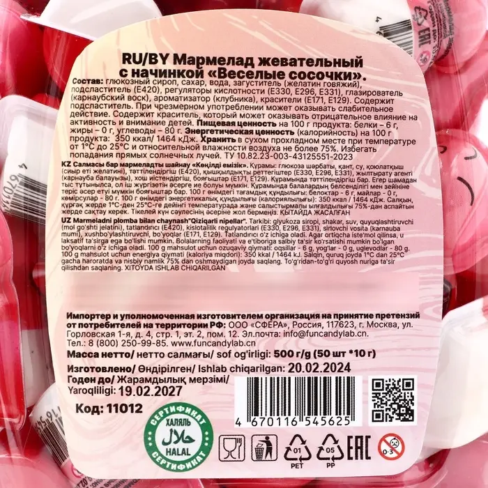 Мармелад «Веселые сосочки» подойдет для праздничного стола, будет отличным угощением на детском приключении или просто принесет радость в обычный день. Это угощение, которое обязательно вызовет улыбку и станет любимой сладостью для всех сладкоежек! Порадуйте себя и своих близких с жевательным мармеладом «Веселые сосочки» — сладким удовольствием, которое всегда поднимет настроение!