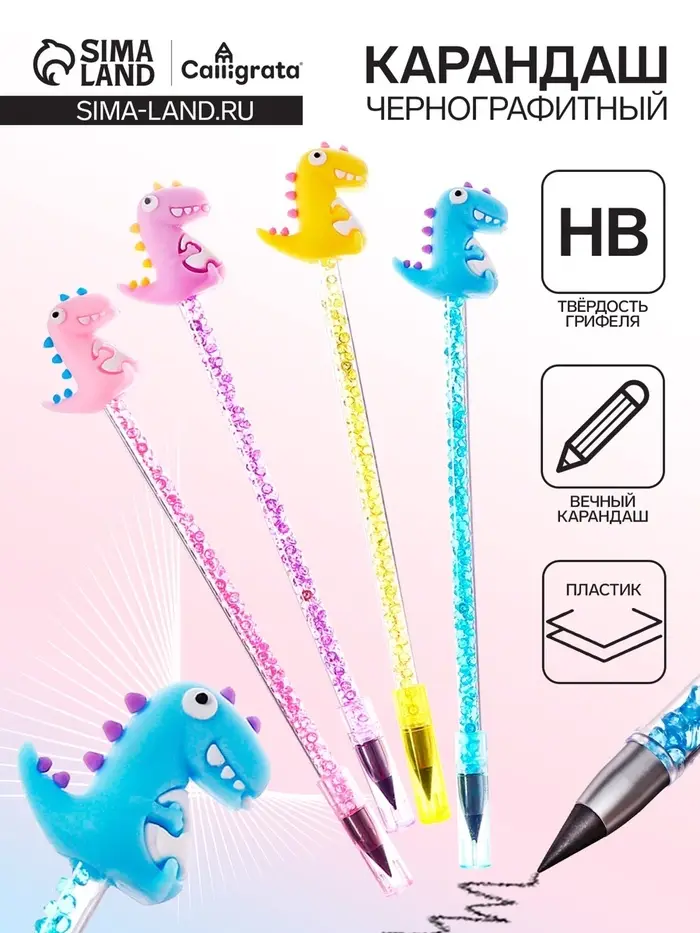 Этот вечный карандаш с динозаврами — для юных исследователей, которые ценят практичность, но не готовы отказываться от интересных деталей. Инструмент решает главную проблему обычных карандашей: грифель здесь не ломается и не требует заточки, освобождая время для учёбы и открытий.