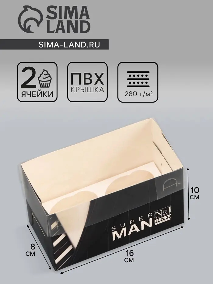 Коробка для 2 капкейка с прозрачной крышкой, «Мужская», 16×8×10 см
