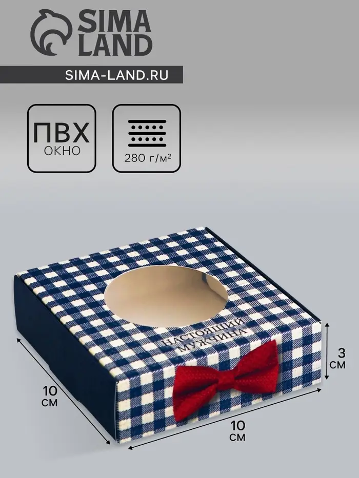 Коробка подарочная сборная с окном, упаковка, «Настоящему мужчине», 10×10×3 см