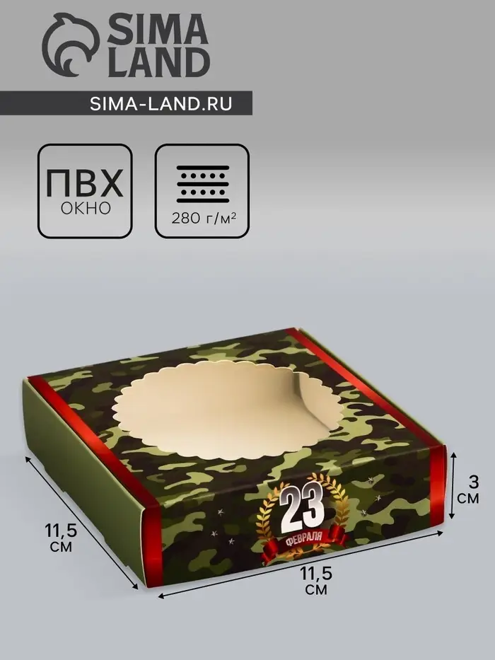Коробка подарочная сборная с окном, упаковка, «С 23 Февраля», 11.5×11.5×3 см