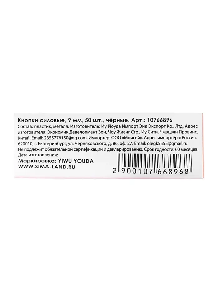 Кнопки силовые черные 50 штук в картонной коробке