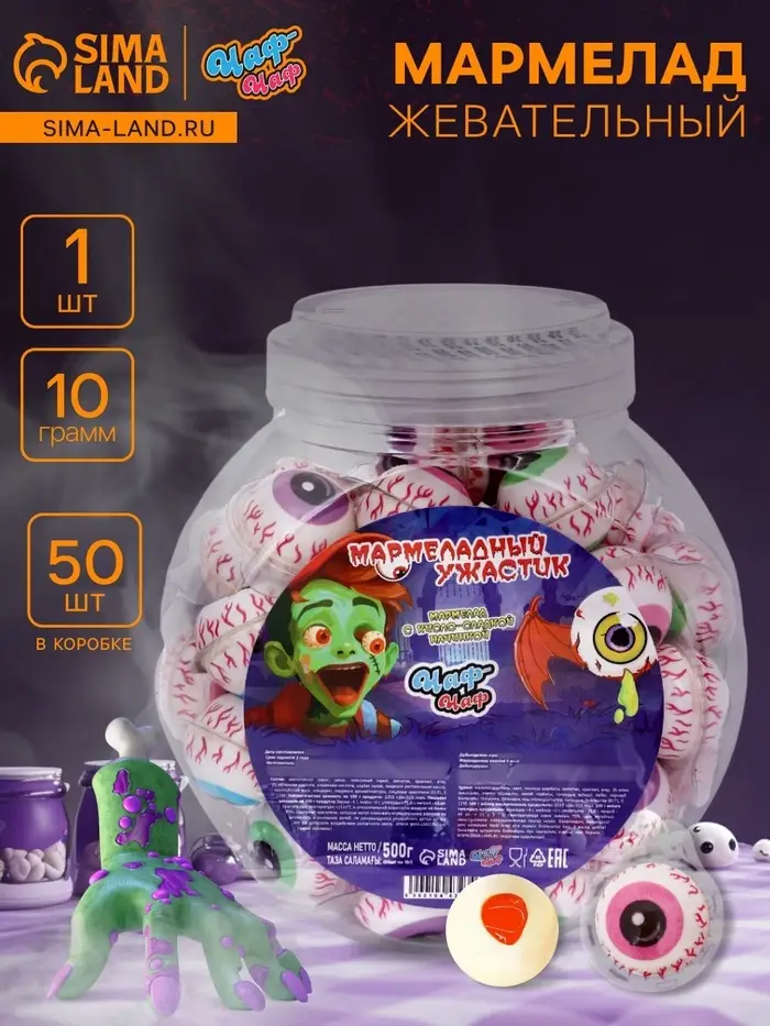 Упаковка "Глаза с начинкой" привлекает внимание и идеально подходит для детей и взрослых, добавляя элемент веселья в любой момент. Подарите себе и своим близким радость с мармеладом "Глаза с начинкой" — это сладкое угощение, которое точно не оставит никого равнодушным!