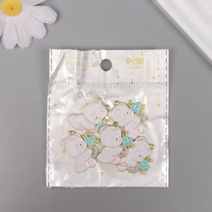 Декор для творчества металл, эмаль "Мишка с сердечком" 2,8х2,3 см
