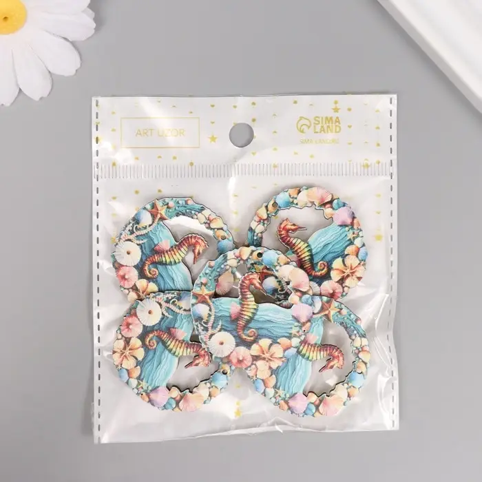 Декор для творчества дерево "Морской конёк" 3,9х3,9х0,3 см