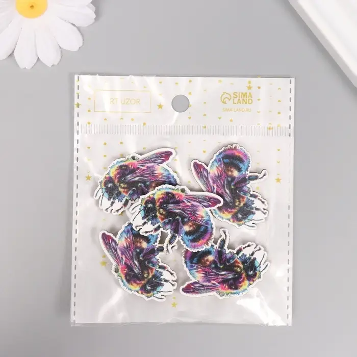 Декор для творчества дерево "Цветная пчела" 3,3х3,9х0,3 см