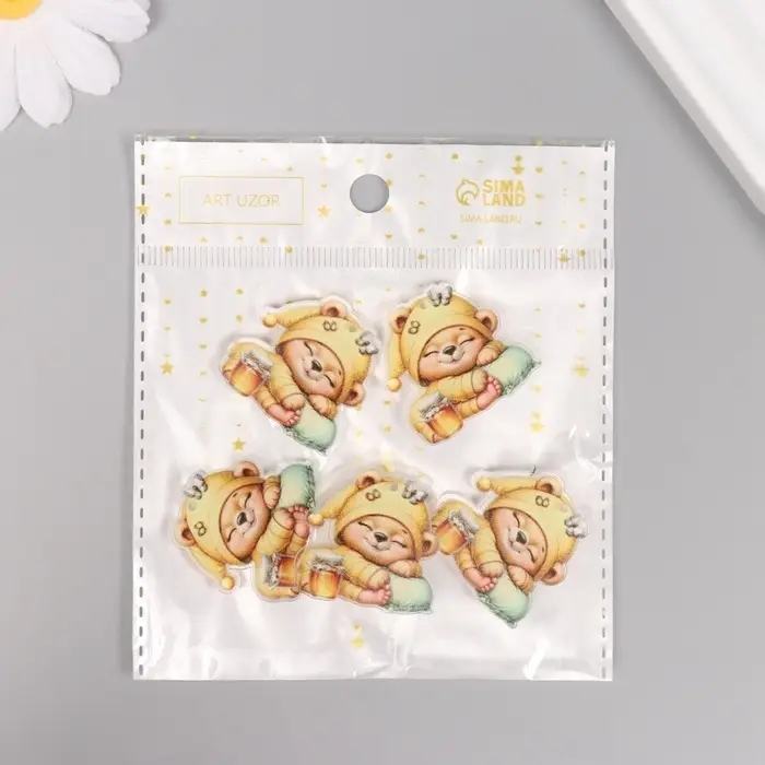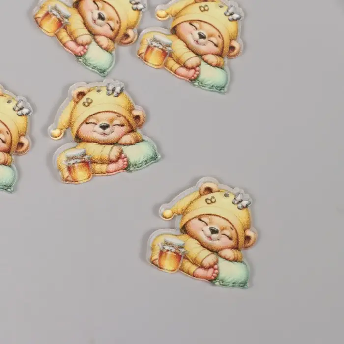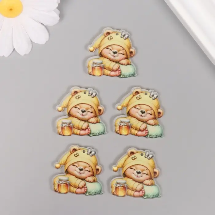 Декор для творчества акрил "Медвежонок в пижамке с баночкой мёда сладко спит" 3х3х0,2 см