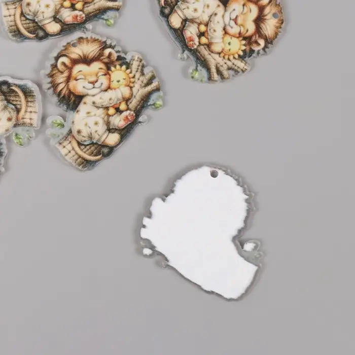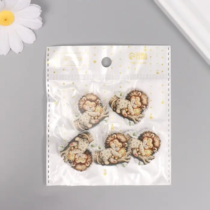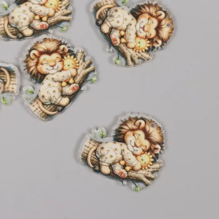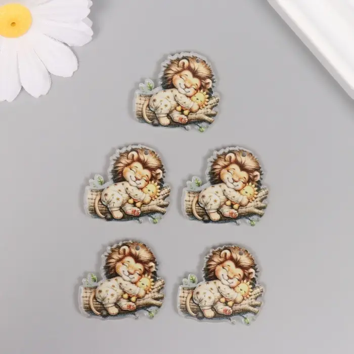 Декор для творчества акрил "Львёнок в пижамке сладко спит на брёвнышке" 3х3х0,2 см