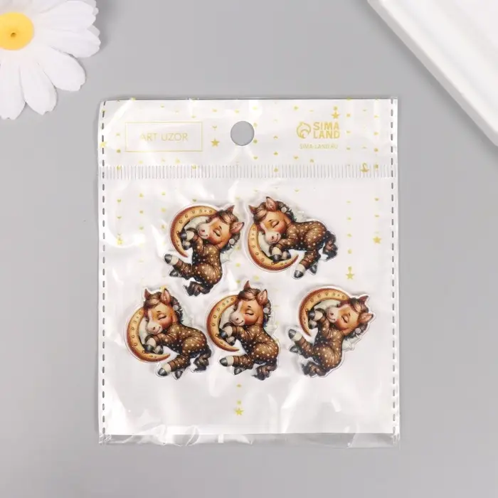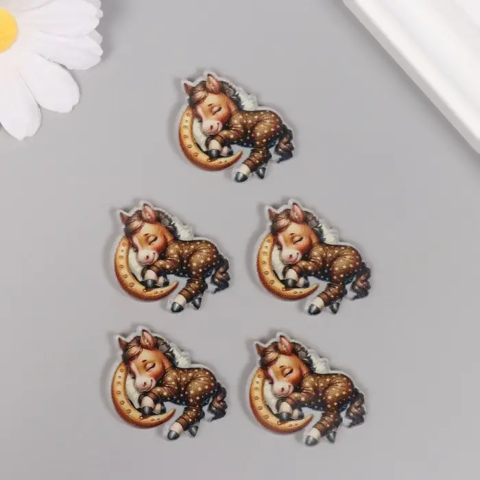Декор для творчества акрил "Лошадка в пижамке сладко спит" 2,5х3,4х0,2 см