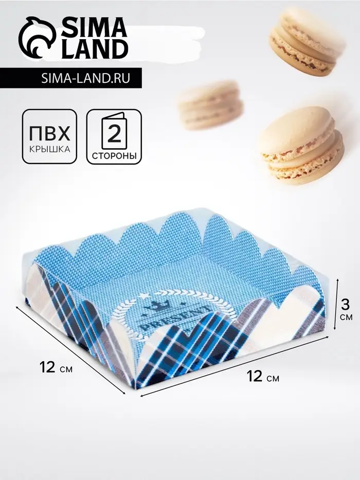 Прочный картон обеспечивает надежную защиту содержимого, а прозрачная крышка позволяет сразу оценить внешний вид угощений без необходимости открывать коробку.