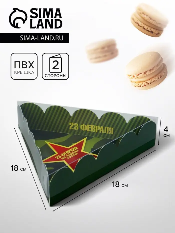 Коробка для печенья, кондитерская упаковка с пластиковой крышкой, «23 февраля», 21×21×3 см