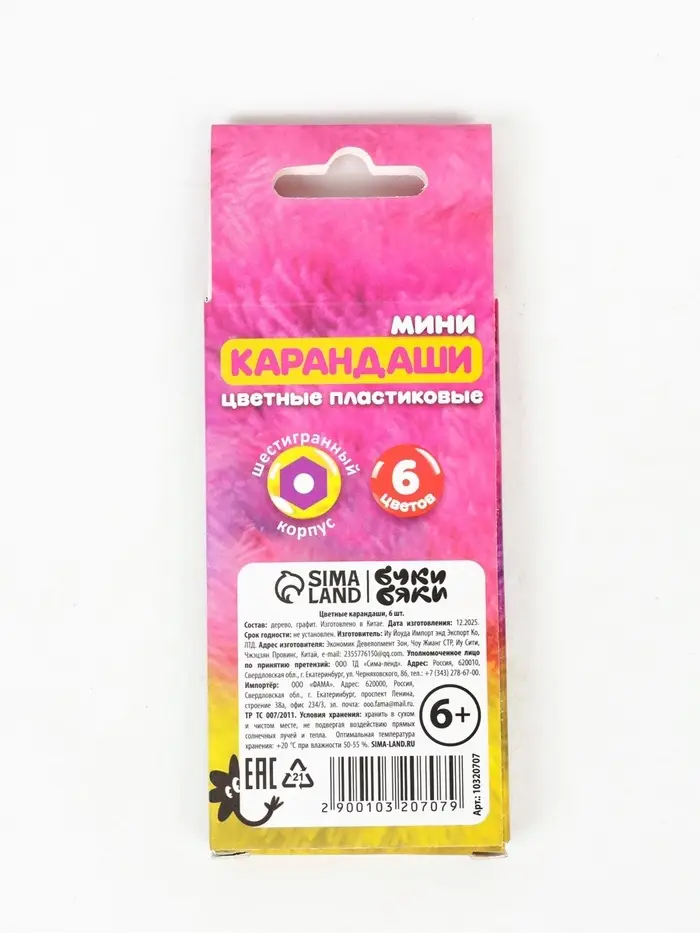 Цветные карандаши, пластиковые, 6 цветов, мини, шестигранные, БукиБяки