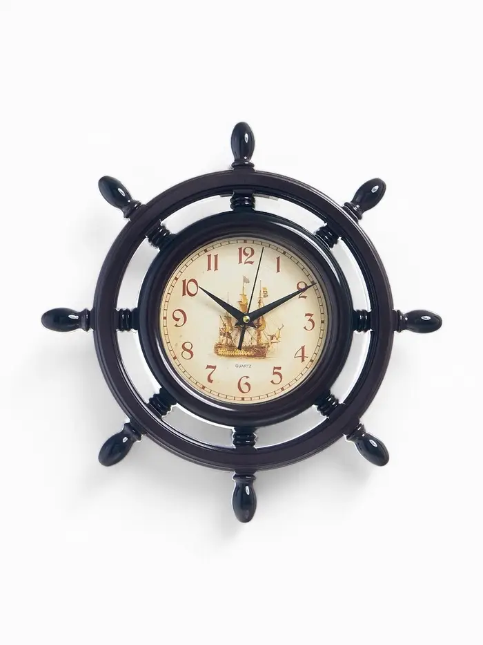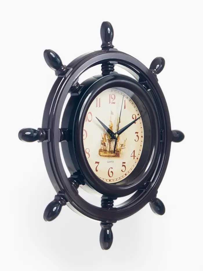 Часы настенные «Штурвал», серия: Море, плавный ход, d=35 см, коричневые