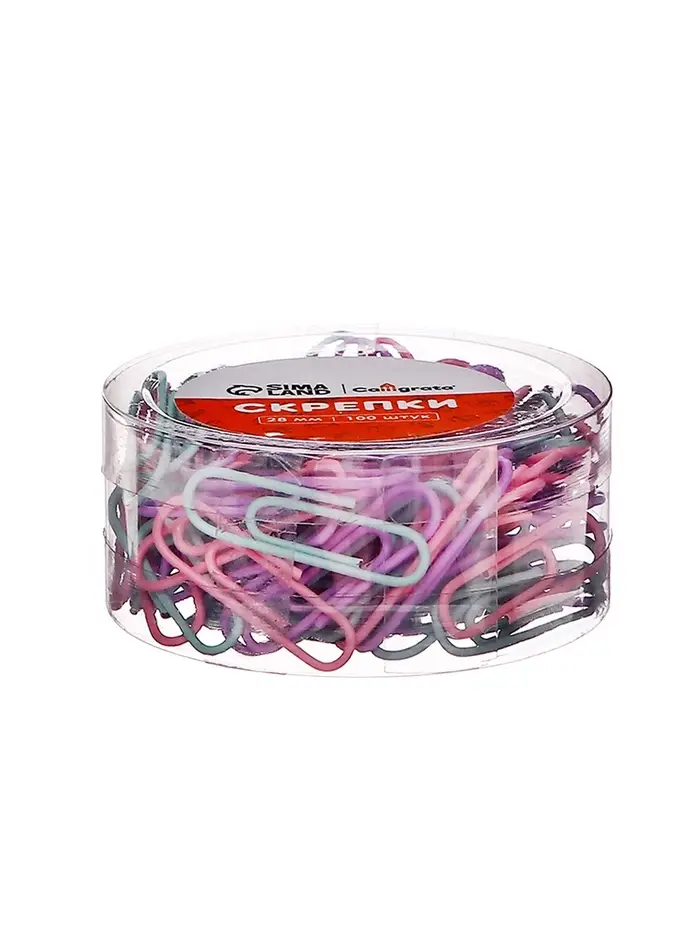 Скрепки 28мм пастель в пластиковой тубе 100 штук