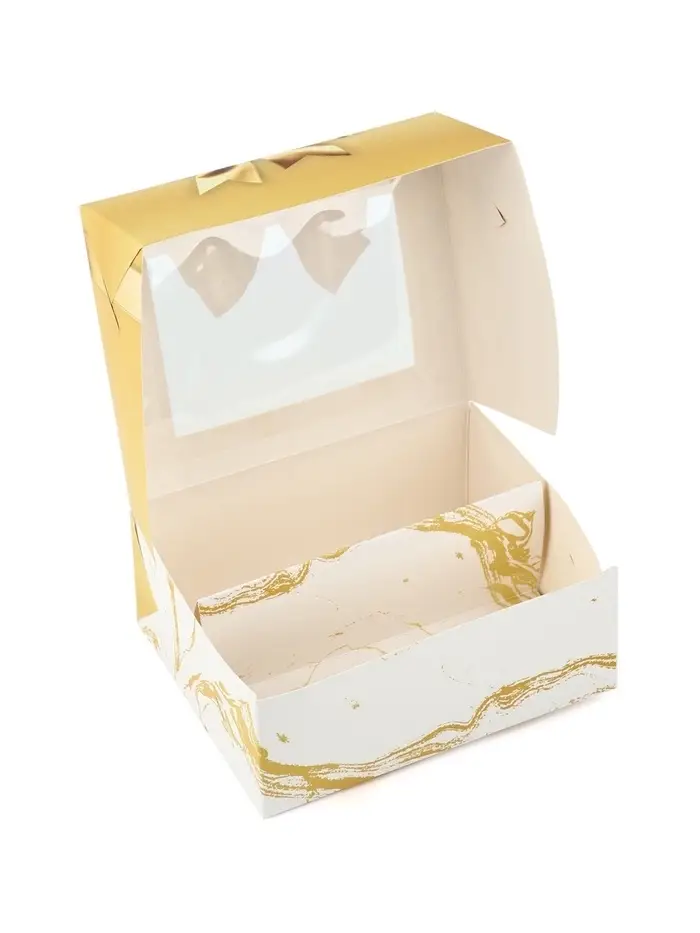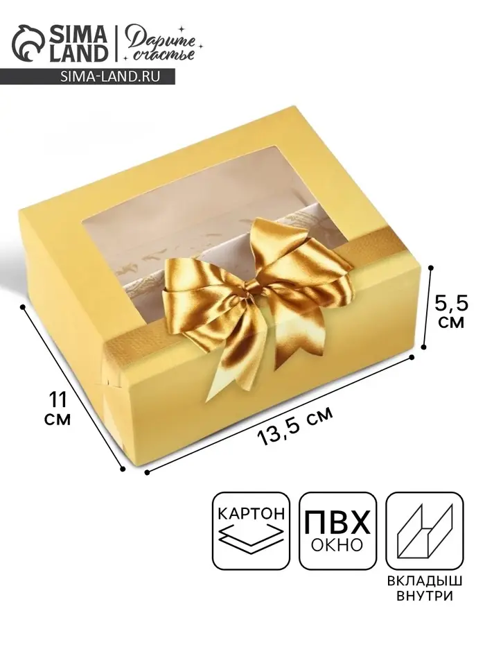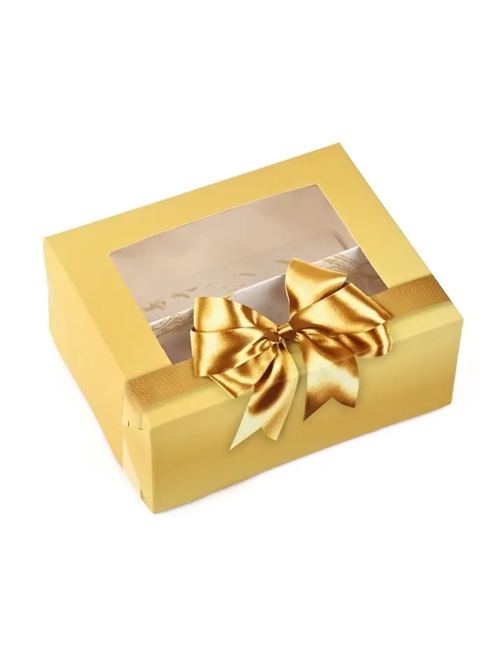 Кондитерская упаковка для макарун с окном, «Золотой бант», 11×13.5×5.5 см