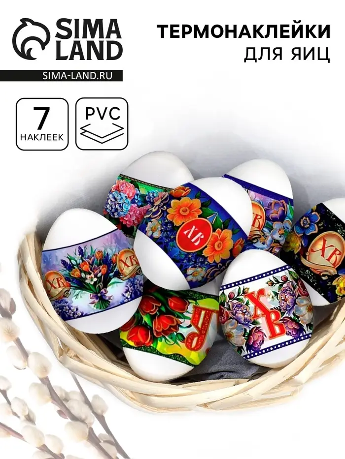 Термонаклейки на 7 яиц «Цветы», на пасху