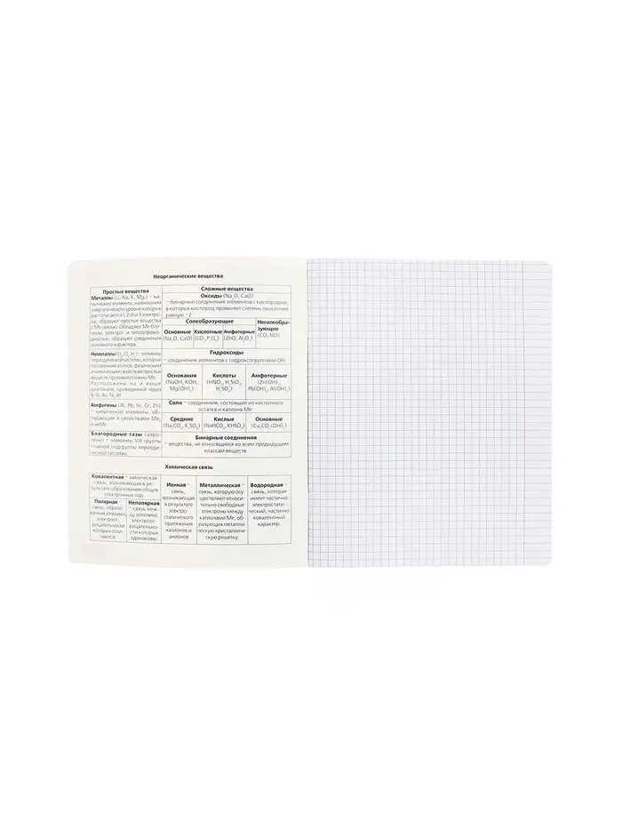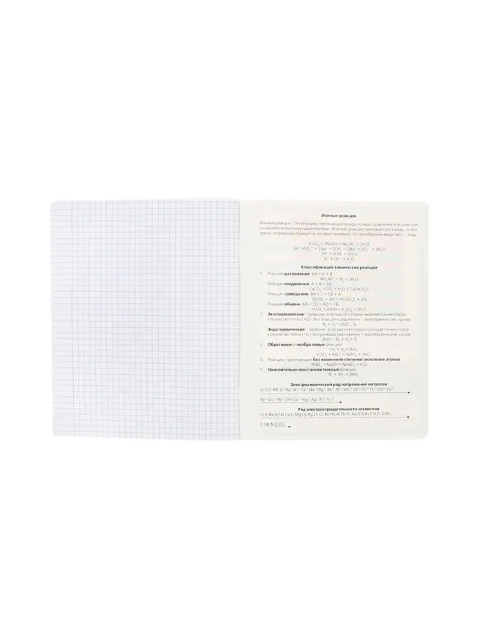 - Белоснежные листы в клетку с чёткими границами удобны для записи реакций