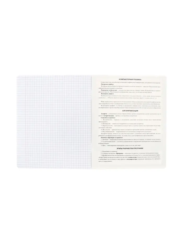 Высокая белизна страниц обеспечивает контрастность записей, что важно для чтения сложных алгоритмов. Наличие справочника на обложке экономит время на поиск информации во время самостоятельной работы. Тетрадь поддерживает системный подход к изучению предмета от базовых понятий до сложных тем.
