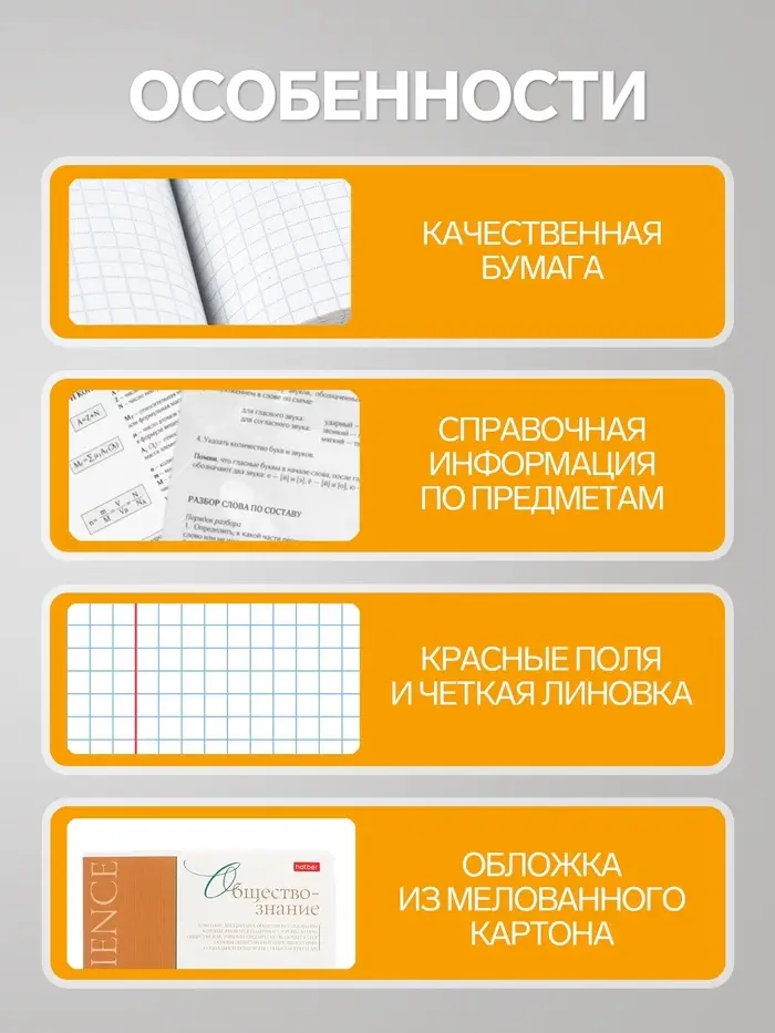 Предметная тетрадь по обществознанию Hatber «Буквица», 48 листов, в клетку, со справочным материалом, обложка из мелованного картона
