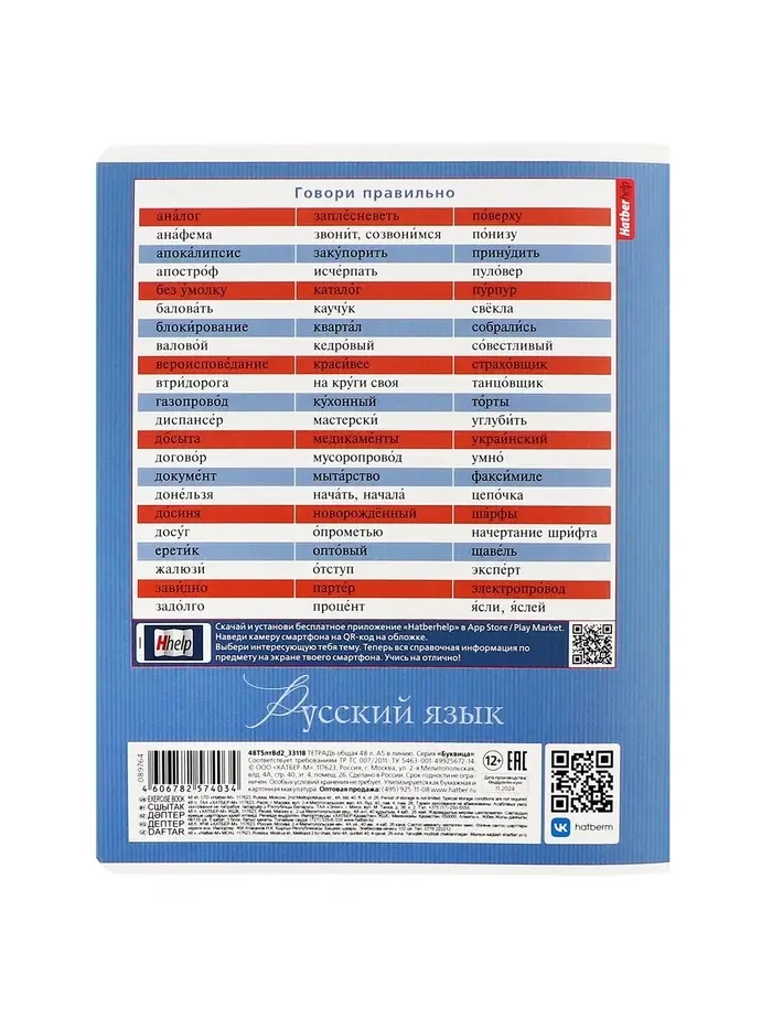 Тетрадь для русского языка из серии «Буквица» подойдёт тем, кто ценит аккуратность и ясную структуру записей. Спокойный дизайн создаёт рабочее настроение, а оформление обложки подчёркивает направленность на язык и грамотность. Такой вариант удобен для школьников, которые регулярно выполняют диктанты, учат правила, сверяются со справочными схемами и фиксируют разбор слов по составу.
