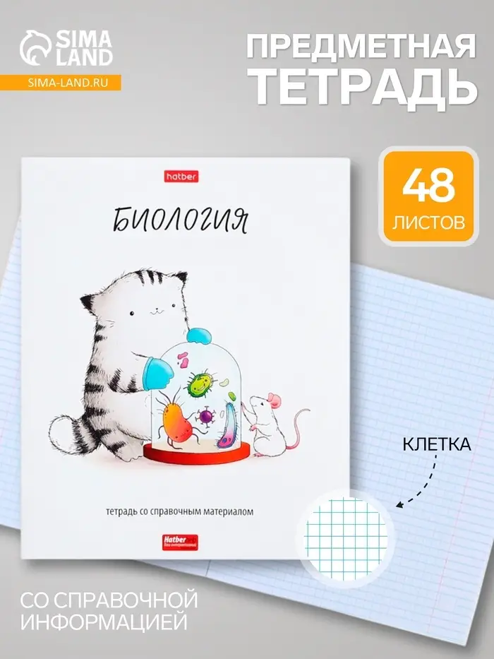 Предметная тетрадь по биологии Hatber «Приключения кота Пирожка», 48 листов, в клетку, со справочным материалом, обложка из мелованной бумаги