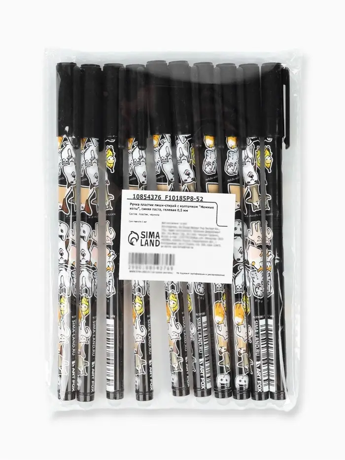 Ручка пиши-стирай с колпачком «Мемные коты», синяя паста, гелевая 0.5 мм