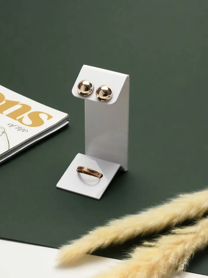 Сохраните порядок в своих украшениях! Подставка для серег и колец – это идеальное решение для аккуратного хранения ваших аксессуаров, выполненное из белого оргстекла.