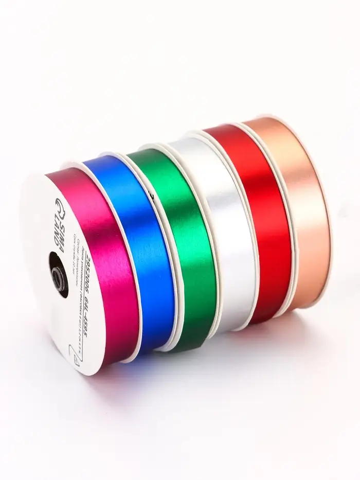 - Пластиковый материал: Прочная лента не рвётся при завязывании, держит форму банта, устойчива к влаге и не выцветает со временем. Хорошо режется ножницами.