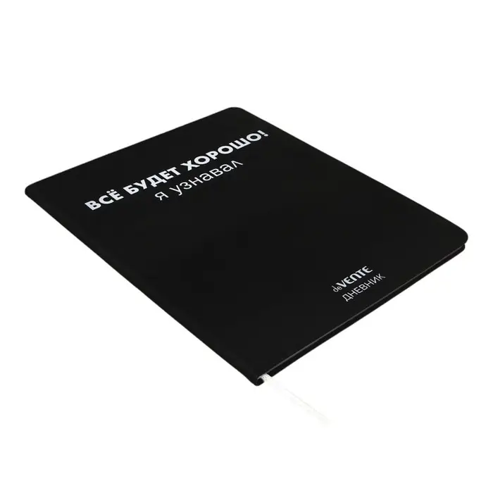 Дневник "deVENTE. Всё будет хорошо! Я узнавал." универсальный блок, 48 листов, белая бумага 80 г/м², печать в 1 краску, гибкая обложка из искусственной кожи, шелкография, отстрочка, 1 ляссе.