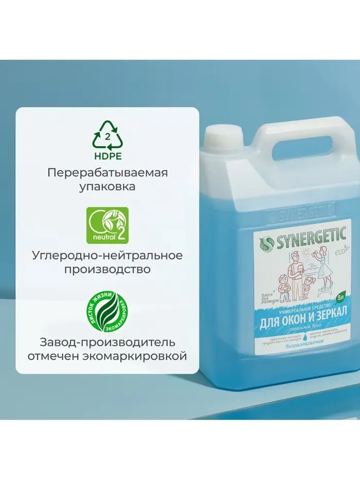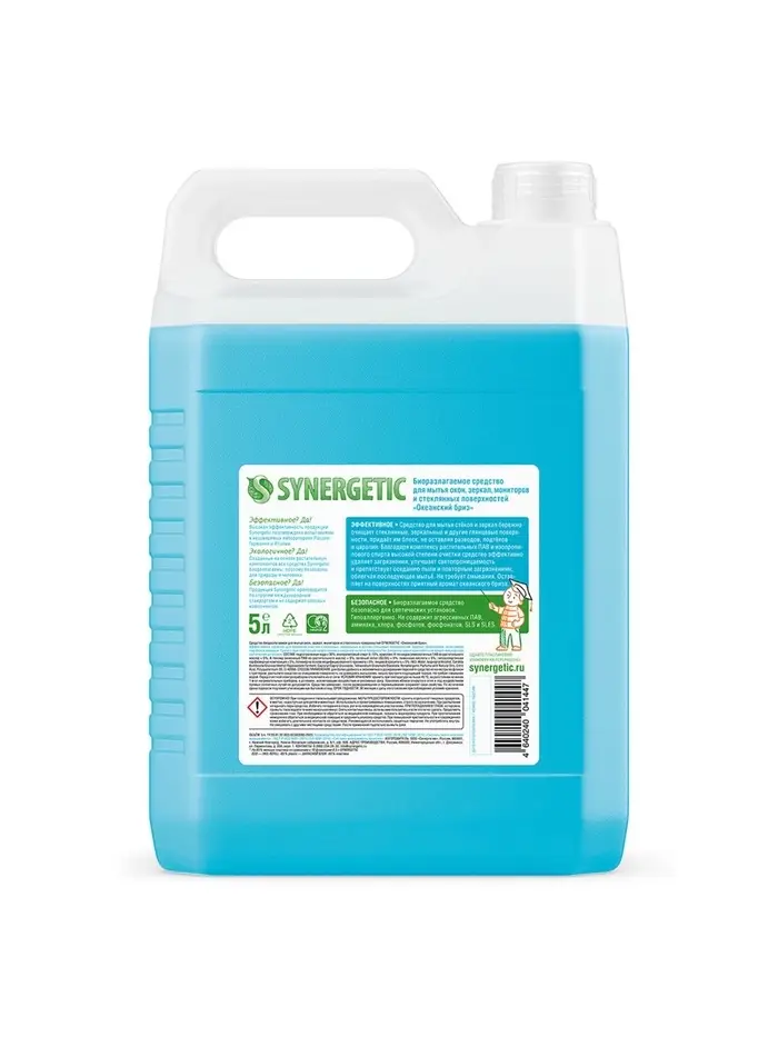 Средство для мытья окон и зеркал Synergetic «Океанский бриз», 5 л