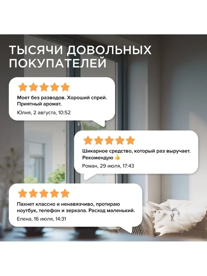 Простота применения: С жидкостью для чистки окон и зеркал вы забудете о сложных пятнах и долгих усердиях. Просто нанесите, протрите, и наслаждайтесь блеском чистоты. Компания гарантирует качество и удобство каждой капли. Преобразите ваш дом в оазис свежести и чистоты всего за несколько движений!