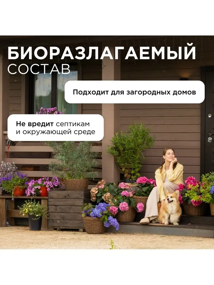 - Экологичность и безопасность: Продукт полностью биоразлагаем и безопасен для окружающей среды. Формула подходит для использования в домах с детьми и животными.