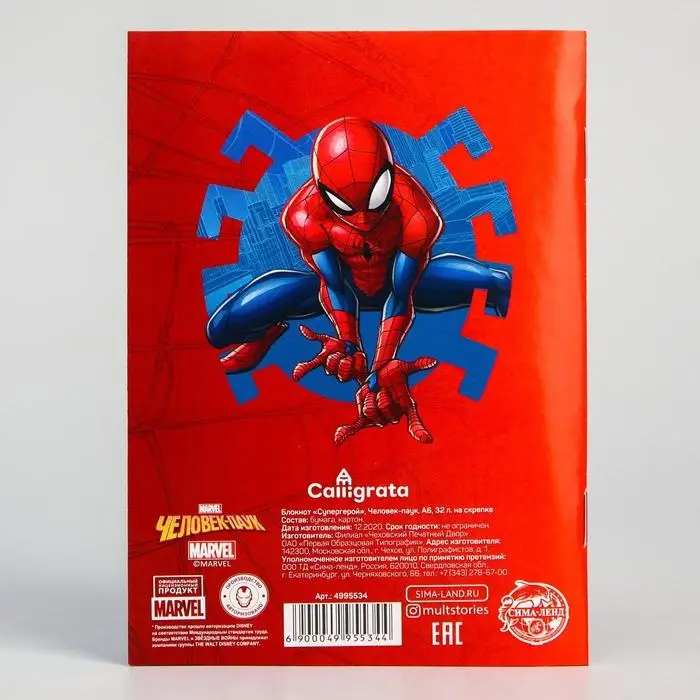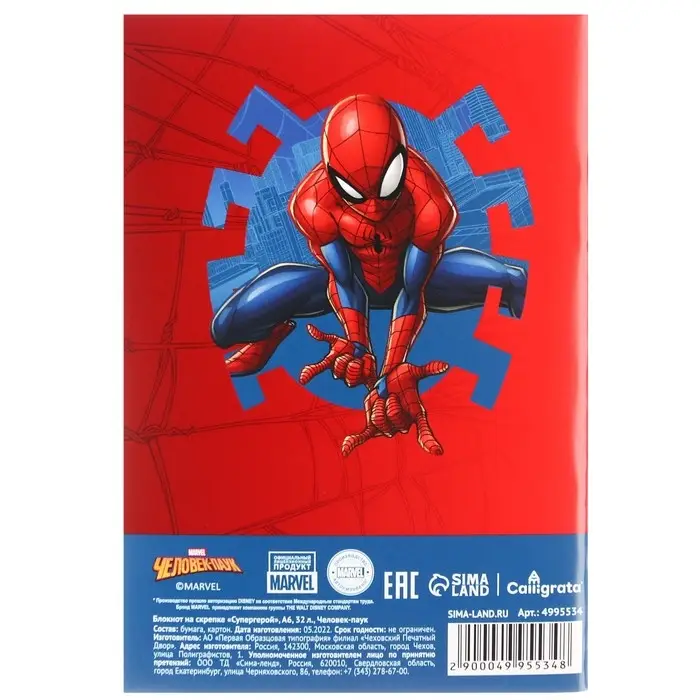 Блокнот А6 32 л на скрепке «Супергерой», Человек-паук