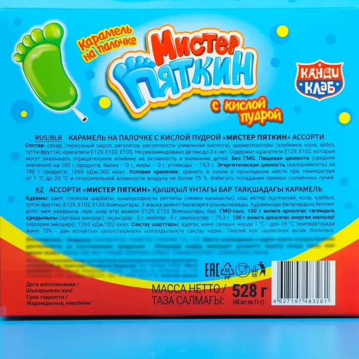 Карамель на палочке с кислой пудрой "Мистер Пяткин", ассорти, 11 г
